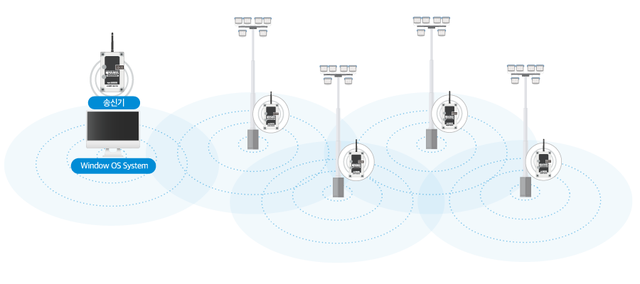 진우엘텍의 무선제어시스템은 LoRa무선 모듈방식으로 조명을 각채널에서 제어가 가능합니다